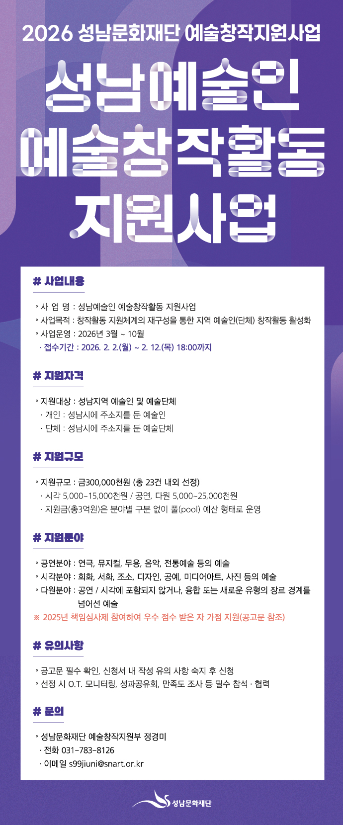 성남예술인 예술창작활동 지원사업_공연, 다원(공연)