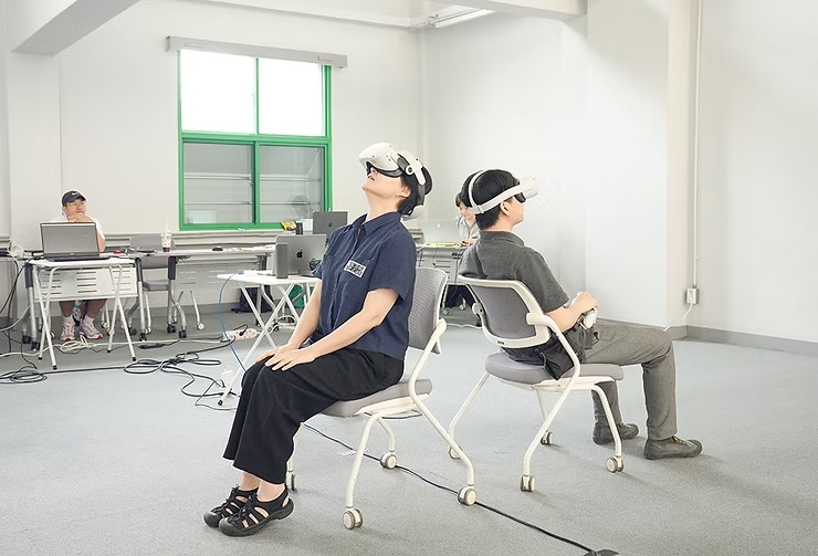 12주의 배움과 교류가 마무리된 5월 21일, 성남문화예술교육센터에서 열린 <업스케일링 성남 오픈 스튜디오>에서는 15명의 예술가와 멘토들이 함께 만들어 낸 1차 결과물이 펼쳐졌다. 생성형 AI로 성남의 과거와 미래를 그려 내는 (전효성, 정치구, 추호승), 주변의 소리에 따라 예측할 수 없이 변하는 인터랙티브 탁구대 <탁구대–농담>(김인열, 한광우), NFC를 활용한 평면회화와 미디어아트의 결합 (이중민), 라디오 주파수와 거리 센서를 이용한 영상 작업 <작은 전쟁>(양재광), 미니카로 연주하는 비주얼 오케스트라 <픽셀 드리프터 실험보고서 3호>(윤호현), 다가가면 소리가 멀어지는 키네틱 사운드 설치 작품 <소리의 틈>(김영일), 돔(dome)형 몰입 공간을 위한 VR 콘텐츠 <비인간 시선>(구래연, 김명규, 노치욱, 송효근, 안소희, 오상민, 전석희)이 공간 곳곳에 자리 잡았고, 작가들의 이야기를 직접 들으며 인터랙티브 아트를 체험할 수 있는 도슨트 투어가 함께 진행되었다.