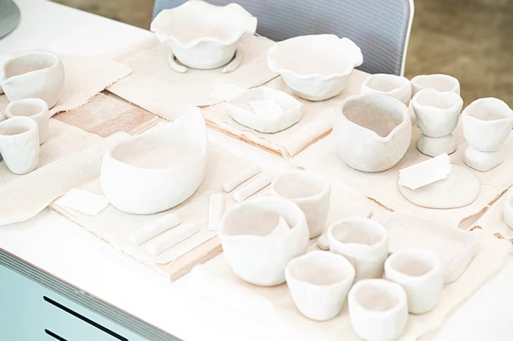수강생들의 열정에 정지희 강사의 조언이 더해지는 동안, 동그란 흙덩이들은 귀여운 미니 절구, 단아한 자태의 면기와 연필꽂이 등 각자의 취향 가득한 형태를 차츰 갖춰 갔다. 수업 시간이 끝나도 수강생 모두 자신의 작품을 한 번 더 다듬고 만지느라 선뜻 자리에서 일어나지 않는 모습. 디테일 하나하나 정성껏 손본 뒤에야 차례로 작업을 마무리하고 자리를 깨끗이 정돈한다. 이날 수업에서 빚은 기물들의 건조를 위해, 정지희 강사는 혹여 작품이 섞일세라 하나하나 꼼꼼히 수강생들의 이름을 표시했다.
