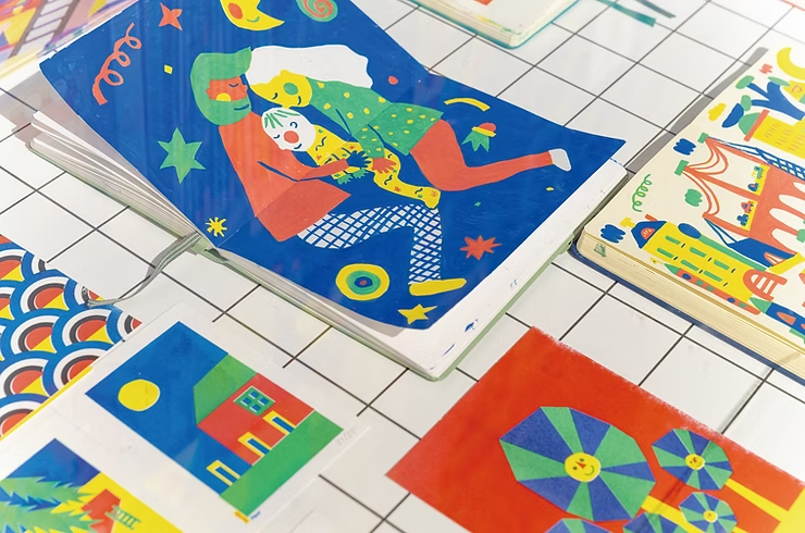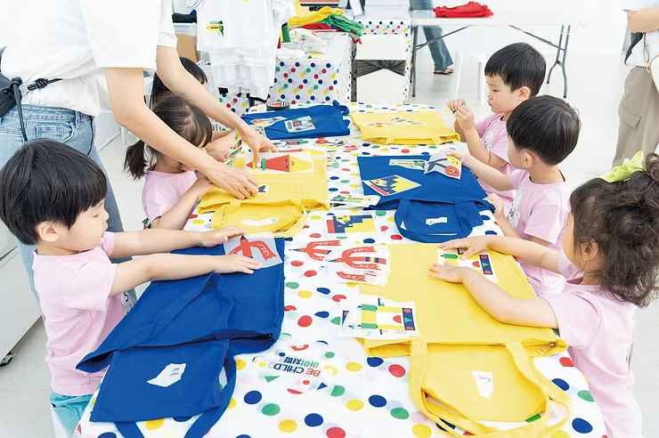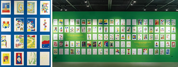 체험존에서는 그래픽 아트를 놀이처럼 즐길 수 있는 다양한 프로그램이 관람객을 기다린다. 작가가 주로 사용하는 원색으로 곰돌이 키링을 채색하거나, 귀여운 도형과 알록달록한 원색 스티커로 티셔츠를 꾸미면 세상에서 하나뿐인 나만의 기념품이 완성된다.