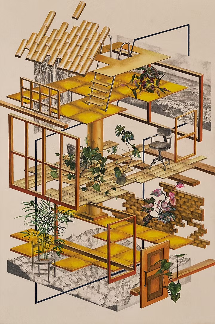 임철민은 자신의 특정 경험을 오브제로, 특정지역의 풍경을 수묵 기법으로 표현한다. <종점>은 버스를 타고 귀가하던 중 잠이 들어 종점에 도착했던 경험을 바탕으로, 새벽의 공단이 지닌 공허한 분위기를 수묵화로 담아냈다. 신서윤은 인생의 불안감과 맞닿은 부분들을 가상의 공간으로 표현한다. 미하엘 엔데의『끝없는 이야기』에서 영감을 받은 <기둥의 숲>은 소리와 언어의 불확실성이 불러오는 감각적 불안을 시각화했다. 권력화된 ‘문자’를 파괴하면서 언어를 예술의 도구로 작동시키는 지희 킴의 <어제>는 영국 유학 시절 느낀 언어장벽으로 시작된 ‘북 드로잉 프로젝트’로, ‘책’을 새로운 창작의 공간으로 재구성하며 내밀한 기억과 연결한다. 김여운의 <클레오파트라와 안토니>는 현대사회의 고정된 기준을 넘어서는 생명력과 개성의 표현 속에 이미지 과잉 시대 속 존재의 본질에 대한 사유를 담아내고, 사진을 회화적으로 표현하는 박근주의 는 일상 공간을 추상적으로구성해 착시적 경험을 선사한다. 김래현은 자아를 표현하는 가장 함축적인 공간으로서 ‘집’의 의미를 탐구한다. 작품 <그곳에 가면>은 인터뷰를 통해 수집한 이야기를 바탕으로 기억과 공간, 관계의 깊이를 시각적으로 풀어내며, ‘집’이라는 공간 안에서 켜켜이 쌓아 올린 현대인의 초상을 은유적으로 표현한다.