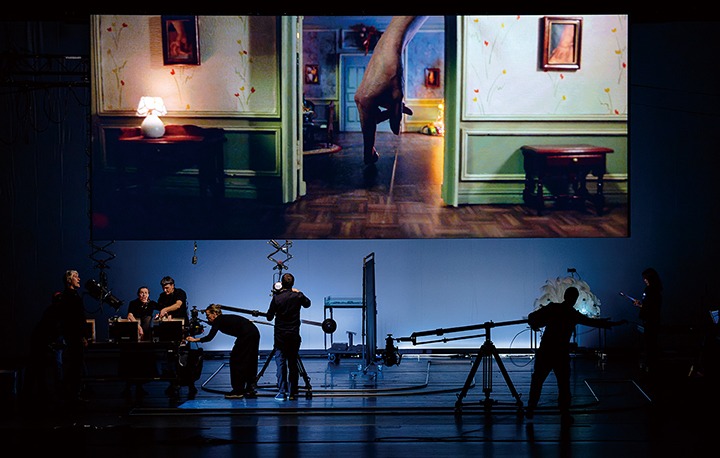 대부분의 공연에서는 막이 오르기 전, 이미 세팅된 무대 세트와 소품들이 앞으로 펼쳐질 공연에 대한 대강의 분위기를 상상하게 만들곤 한다. 하지만 <콜드 블러드>는 어떤 무대가 펼쳐 질지 조금도 예측할 수가 없었다. 텅 빈 무대 위에는 커다란 스크린과 이동식 카메라가 설치되어 있을 뿐 세트나 소품도 찾아볼 수 없었고, 진행요원처럼 새까만 옷을 입은 창작진만이 좌우로 바삐 움직이고 있었다. 이윽고 암전이 시작되자 예상을 뛰어넘는 풍경이 펼쳐지기 시작했다. 무대 위 카메라가 돌아가기 시작하고 정교한 미니어처와 인형, 조명과 소품이 만들어 내는 작은 세계가 카메라에 의해 새로운 생명을 얻은 듯 스크린에 비쳤다.