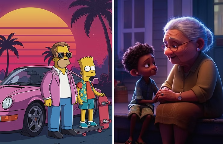 AI가 만든 심슨 가족과 픽사 스타일 그림 © shutterstock