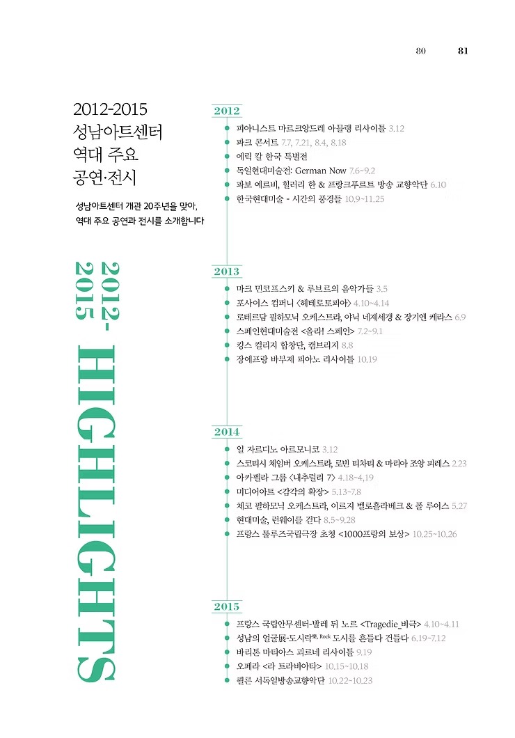 2005년 10월 14일. 성남시민의 문화향유를 위해, 세계 속의 문화도시 성남시를 만들기 위해 성남아트센터가 문을 열었습니다. 그로부터 20년, 도시 곳곳에 문화예술을 꽃피우기 위해 함께 걸어온 그간의 발자취, 알차고 풍요로웠던 아름다운 예술의 기록들을 2025년 한 해 동안 차례대로 살펴봅니다.