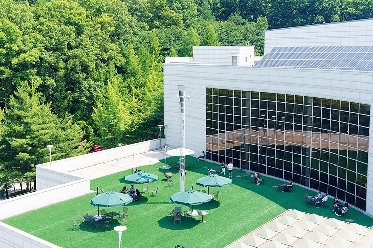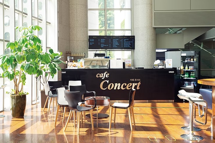 먼저 성남아트센터의 콘서트홀을 경험하신 분들이라면 한 번쯤 꼭 마주치셨을 콘서트홀 카페! 콘서트홀 로비 ‘카페 콘서트’는 성남아트센터 꼭대기에 위치한 콘서트홀을 찾아오신 관객들의 소중한 오아시스입니다. 간단한 스낵류도 비치하고 있어 음료와 간식을 함께 즐기기에도 좋죠. 너무 덥지 않은 날에는 콘서트홀 앞 야외 파라솔 그늘 아래서 푸릇푸릇한 마운틴뷰를 바라보며 여유를 즐길 수 있답니다. 꼭 콘서트홀 공연 관람이 아니더라도, 맑은 날씨에 탁 트인 야외 공간에서 즐기는 커피 한 잔은 힐링 타임에 제격이지요.