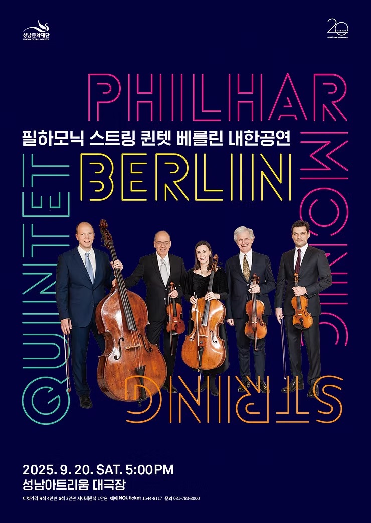 베를린 필하모닉 수석 연주자들이 더블베이스를 포함한 5중주 편성으로 성남아트리움 무대에 오른다. 드보르자크 5중주의 깊이 있는 재해석부터 파가니니의 화려한 명곡까지, 한 무대에서 현악 앙상블의 모든 매력을 남김없이 선보일 예정. 정통 실내악 레퍼토리의 밀도 높은 앙상블부터 <웨스트사이드 스토리>까지, 클래식 음악 애호가와 입문자 모두에게 음악의 즐거움을 선사할 것이다.