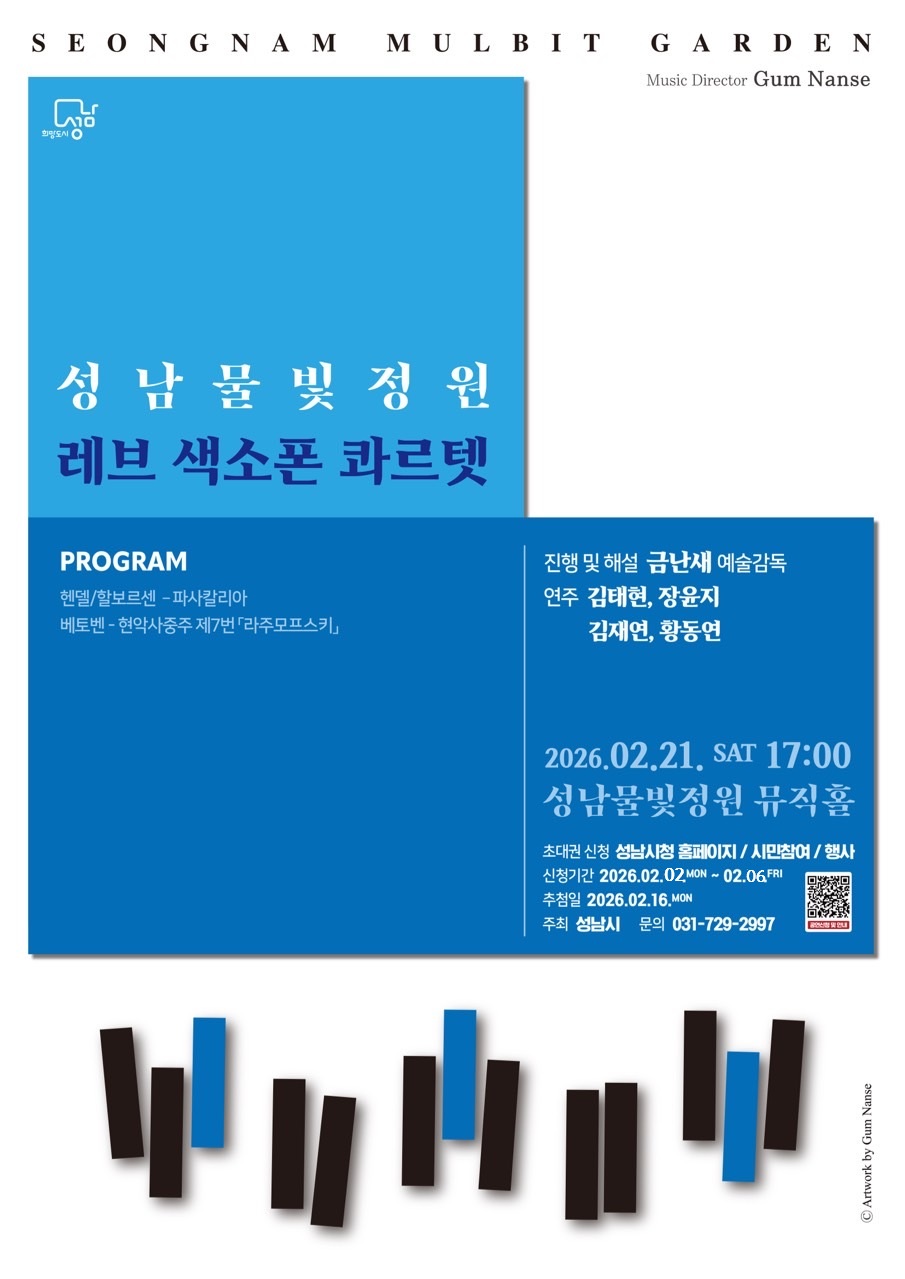 * 2월 20일 추가 공연이 예정되어 있어, 레브 색소폰 콰르텟 공연 신청 일정을 2월 2일~ 2월 6일로 변경하니, 양해 부탁드립니다.