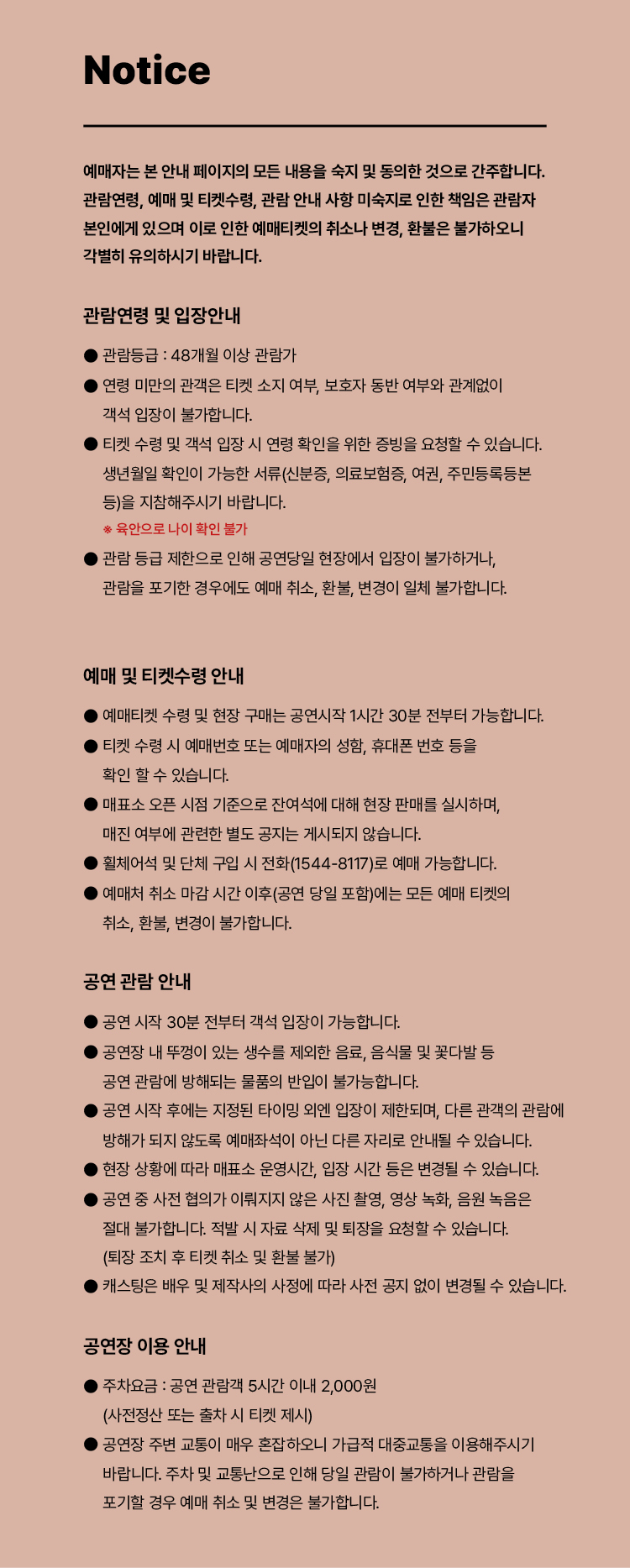 * 휠체어석 이용을 원하시는 관객께서는 1544-8117로 문의 주시면 예매 안내를 받으실 수 있습니다.