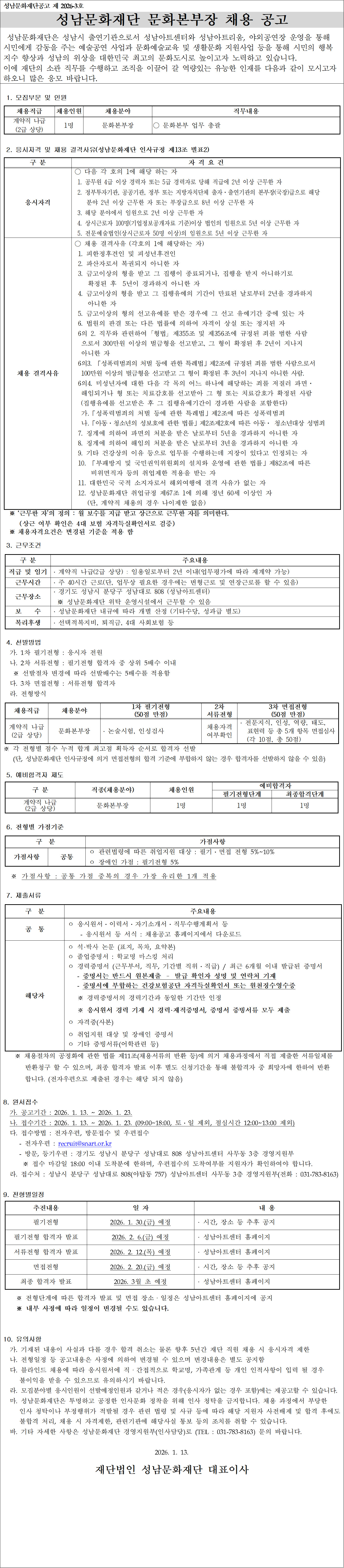 성남문화재단 문화본부장 채용 공고