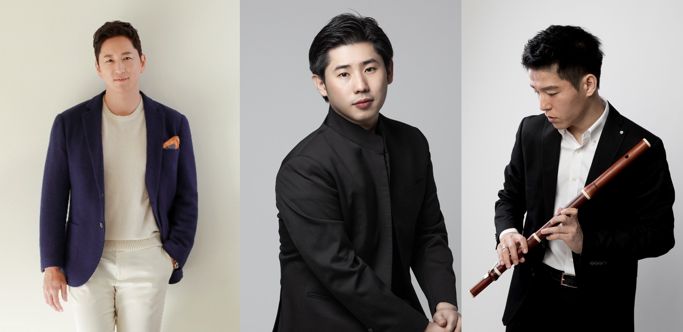 올해부터 새롭게 마티네 콘서트 진행을 맡은 아나운서 한석준 / 3월 첫 공연에 협연하는 피아니스트 이진상 ⓒHyemi Kim / 10월 공연에 협연하는 리코더 연주자 정윤태 ⓒJiye Lee