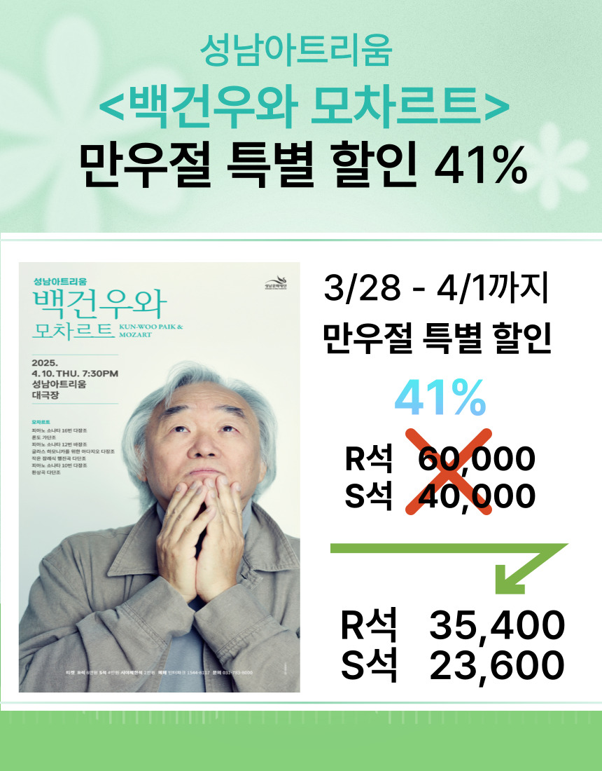 [만우절 특별 할인] 성남아트리움 <백건우와 모차르트>