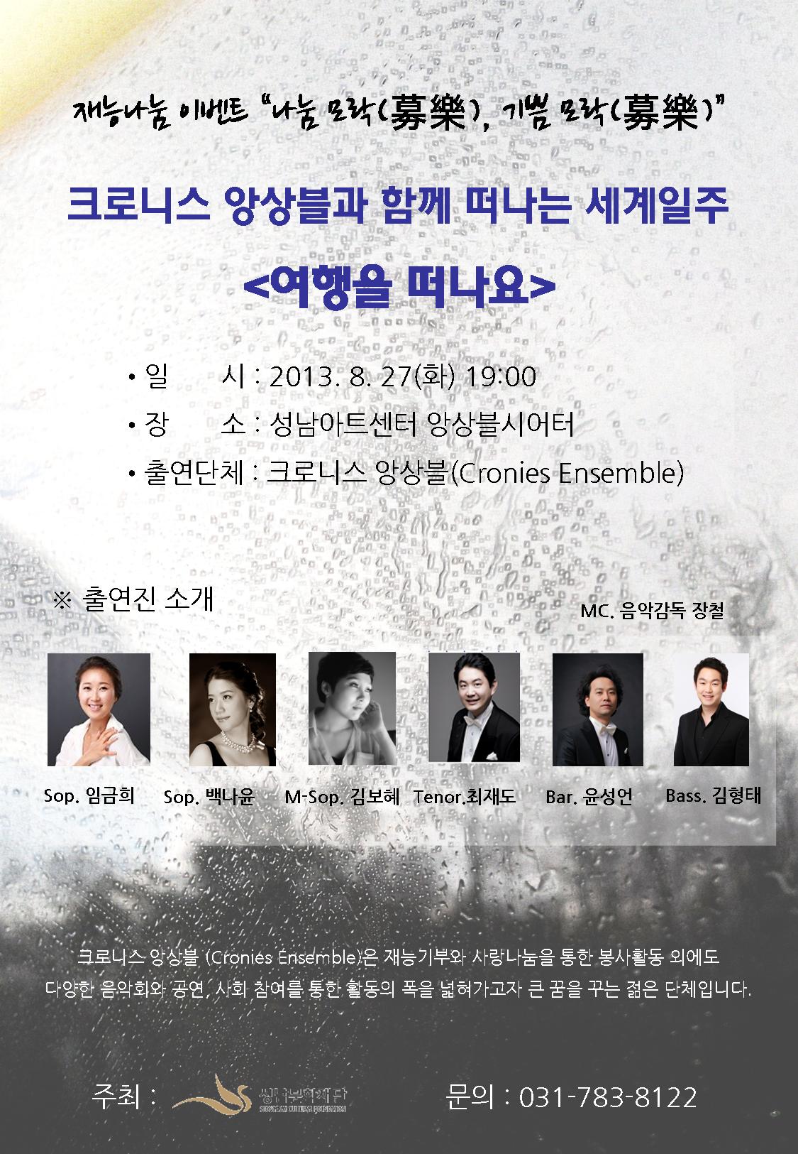 재능나눔 이벤트 8월공연 "크로니스 앙상블과 함께 떠나는 세계일주 <여행을 떠나요>